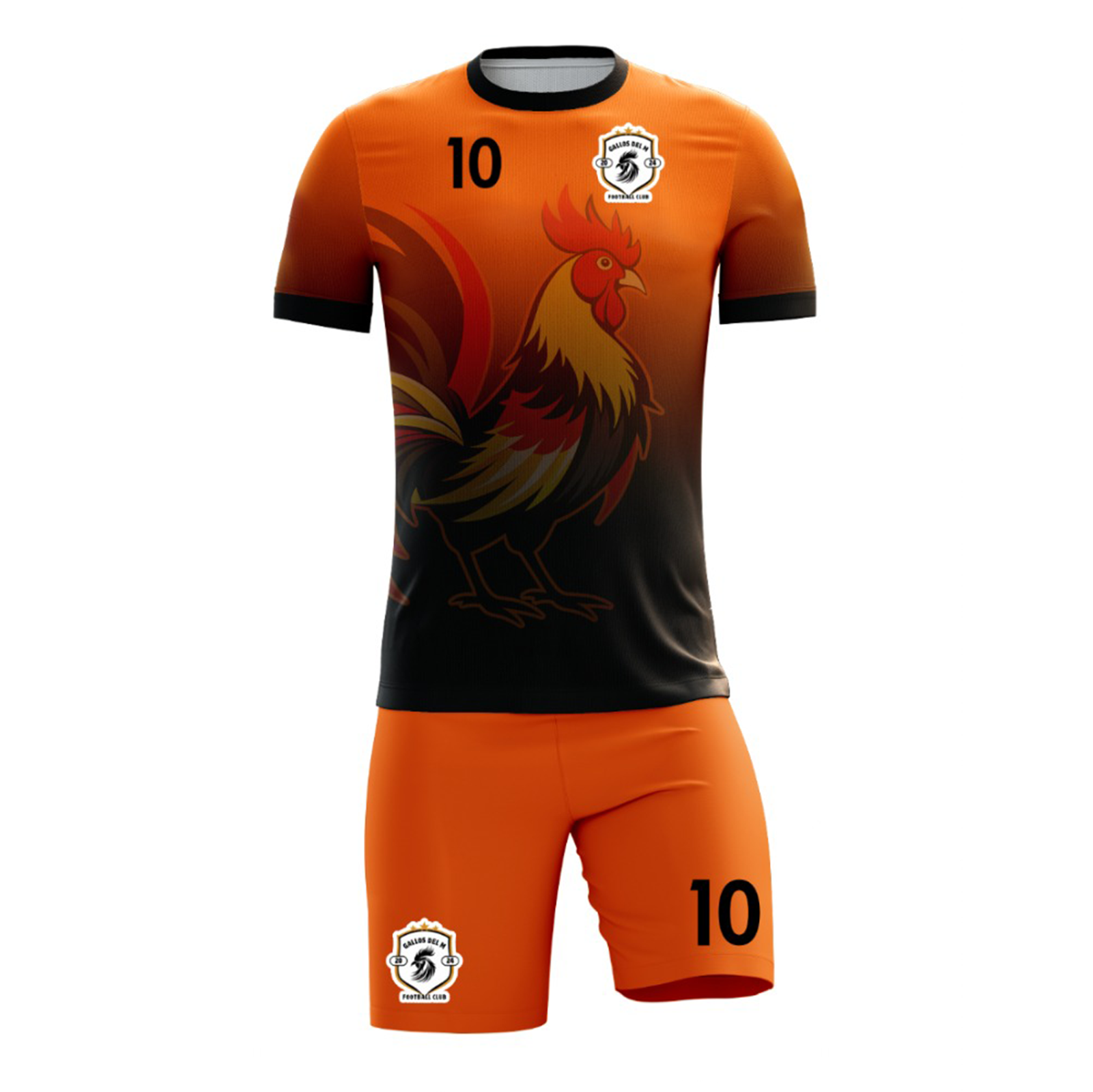 Conjunto deportivo de jersey cuello redondo cerrado y short. Disponible en telas